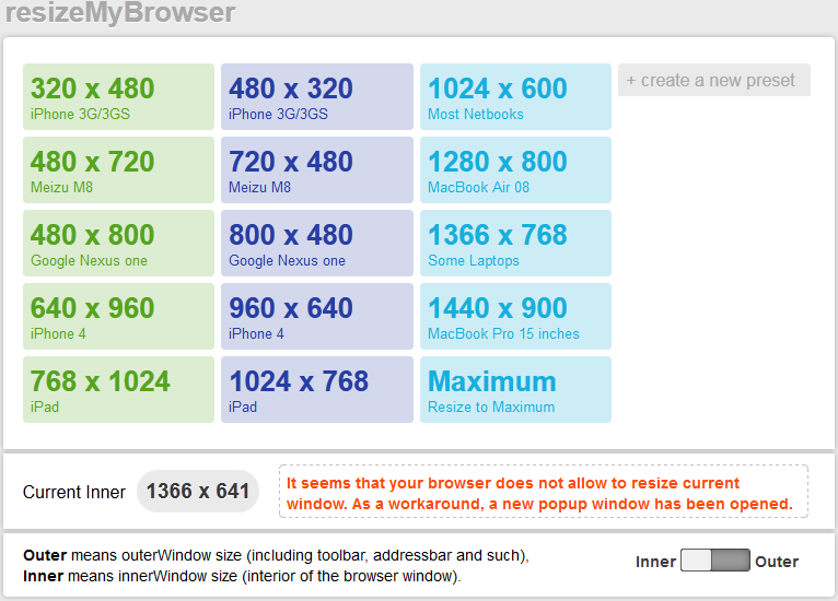 It will provide you with 15 different presets for the browser dimensions so that you can test the responsiveness of your site. Of course, you are also free to enter custom presets for the browser. It works best for Internet Explorer and Firefox browsers.