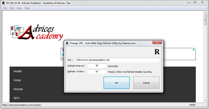 The auto web page refresh software is a windows based application that comes with default refresh-rate interval settings. However, it provides the option to set the intervals manually as per the requirement. It allows timer settings in terms of refresh-interval and refresh-frequency settings. Enter the time in seconds for which you want to refresh the desired web page and enter the maximum refresh frequency for the number of times you want to refresh the particular URL. If you disable the frequency counter then you can enter 0.