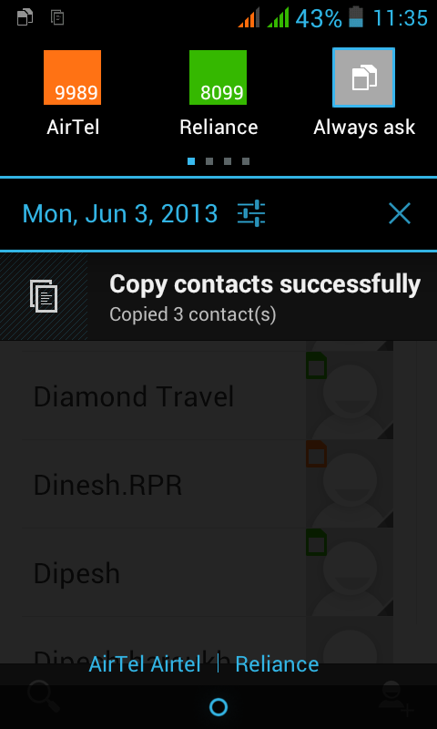 - Once the contacts are copied you will see the notification in the notification menu.